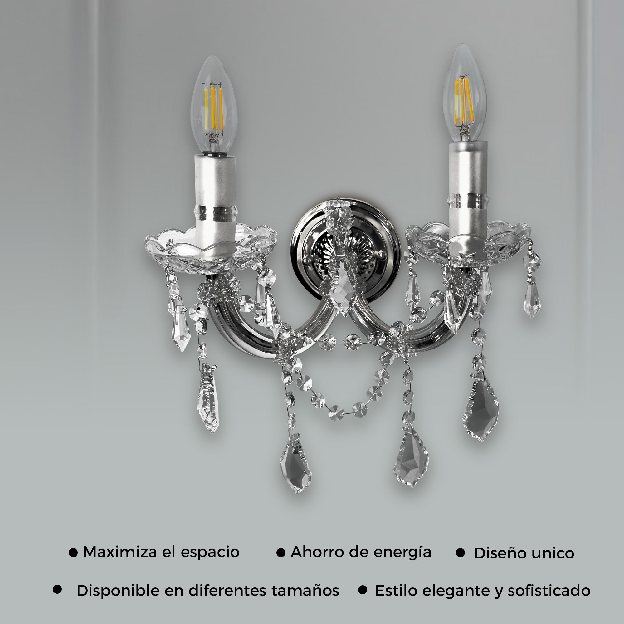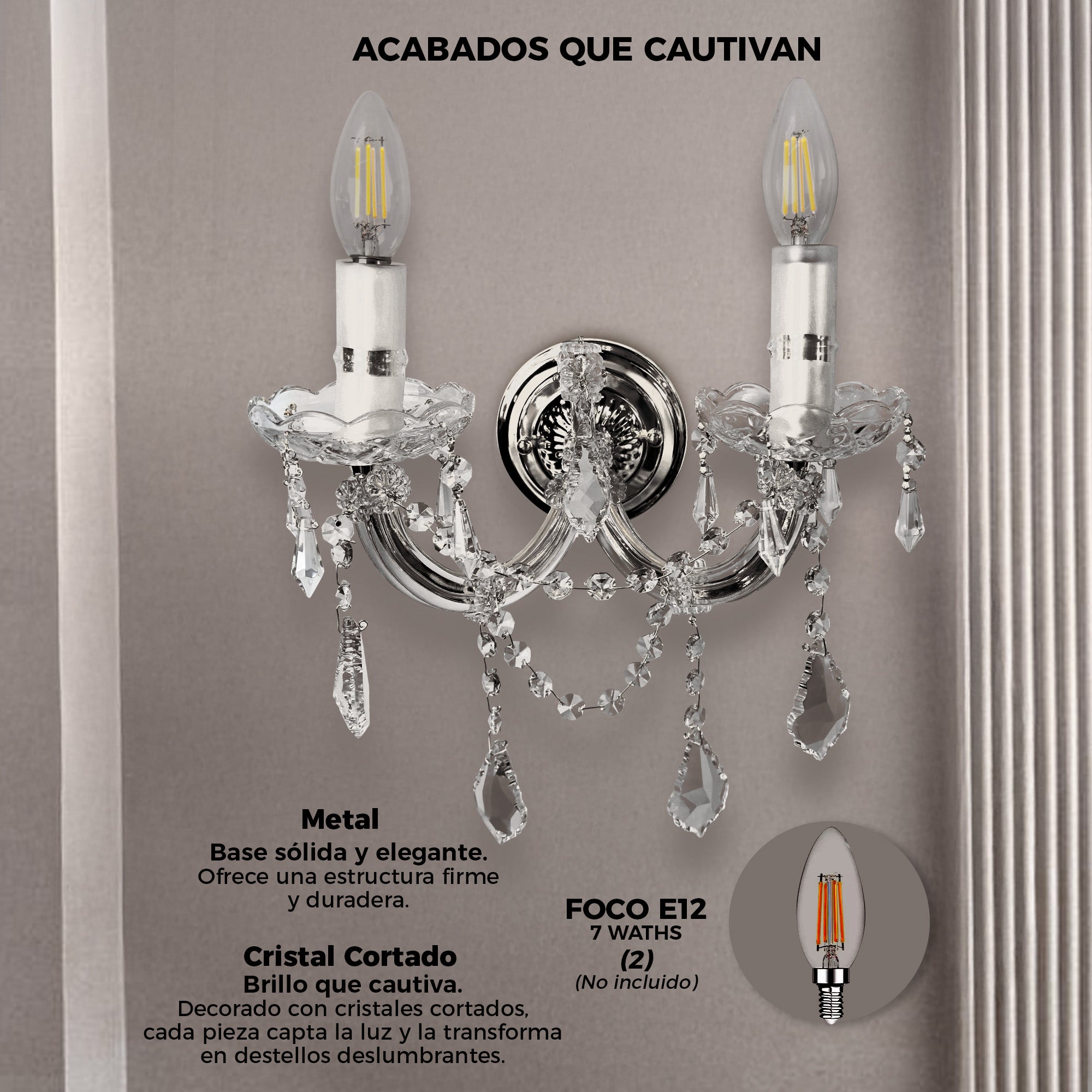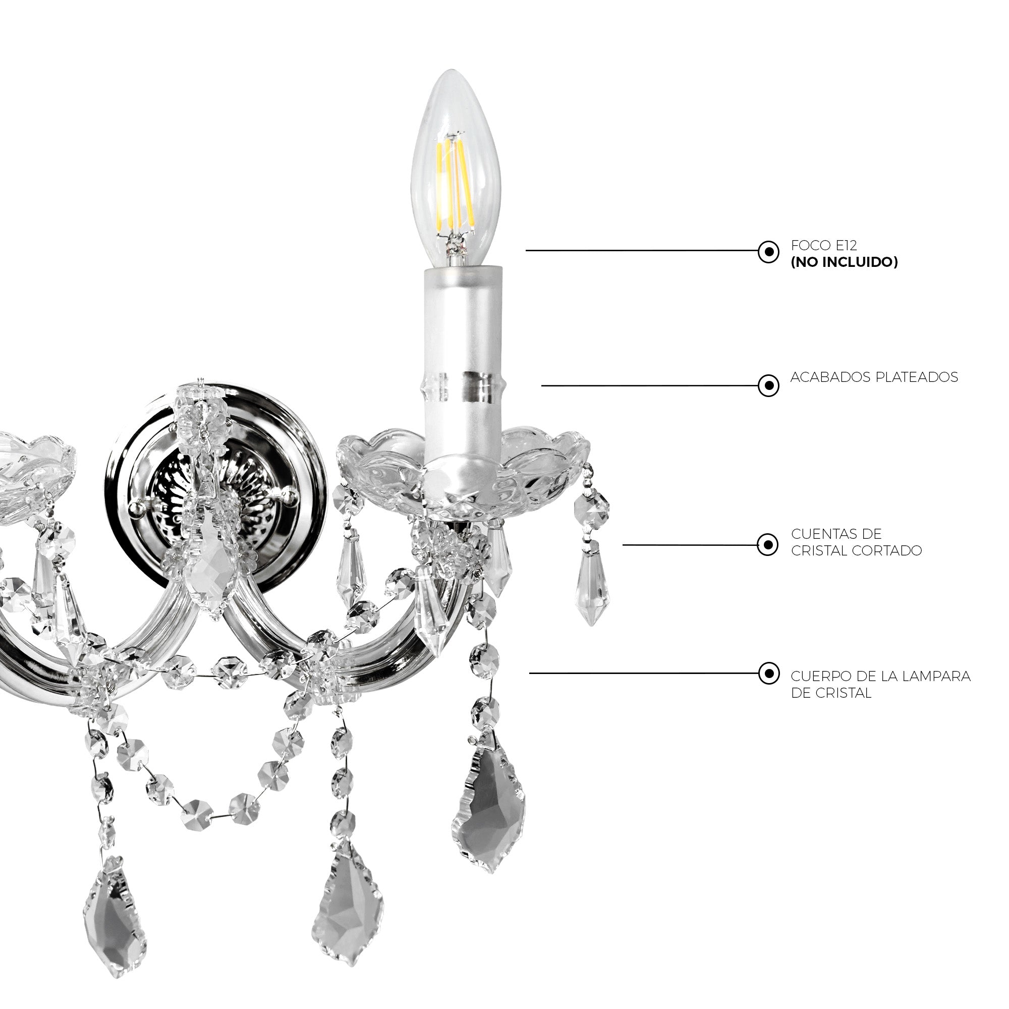 - Material: Metal y Cristal cortado