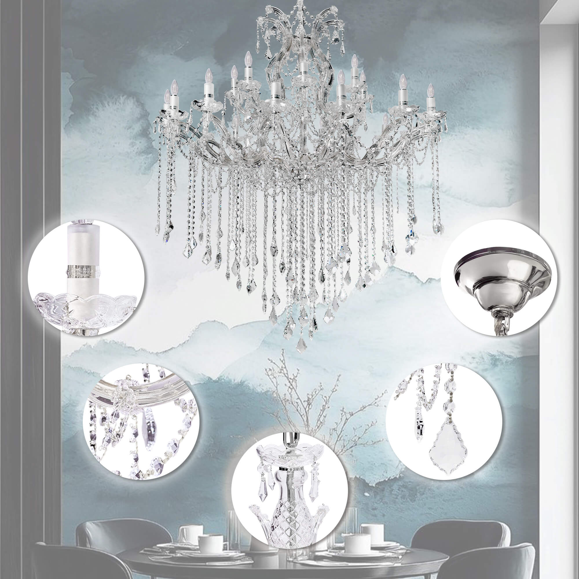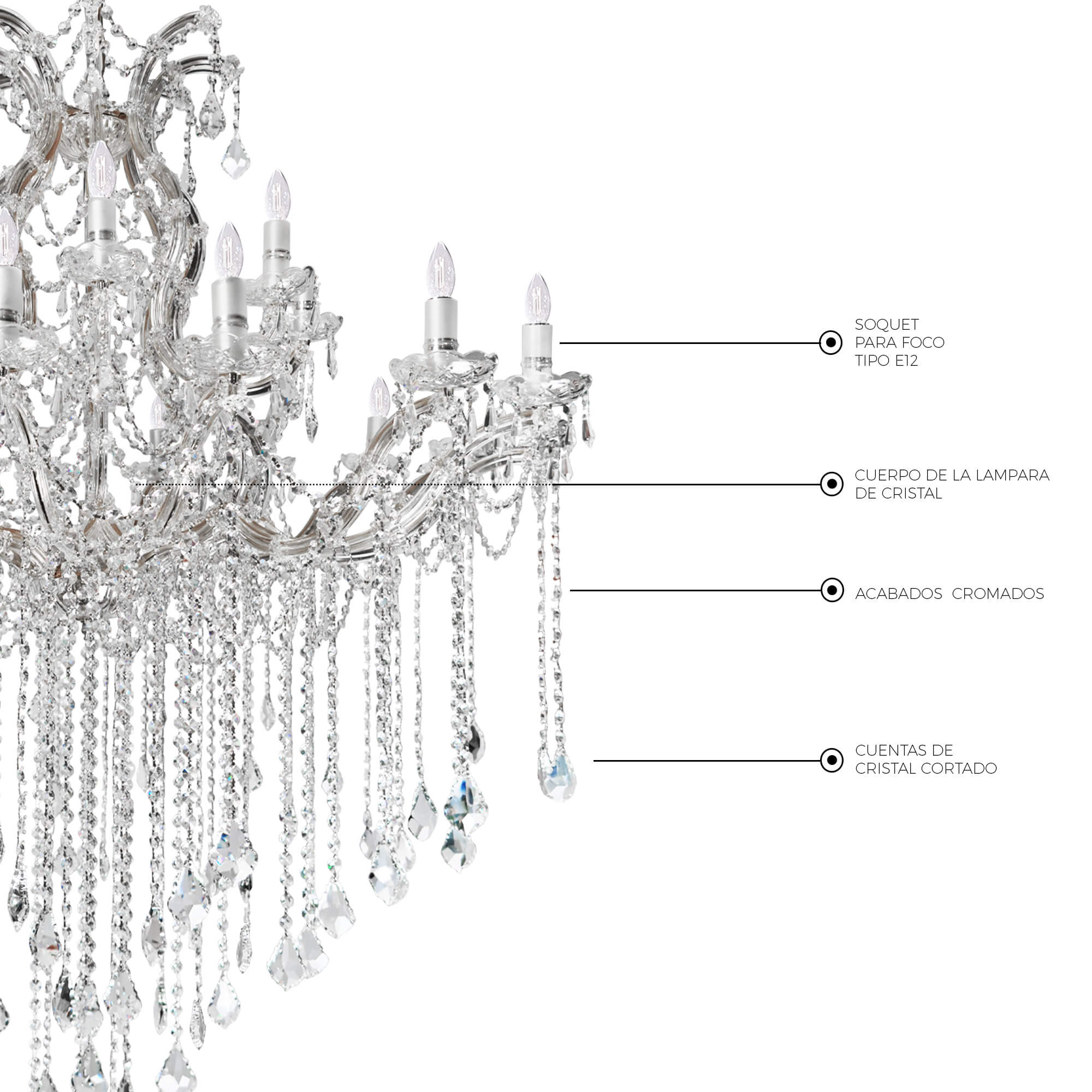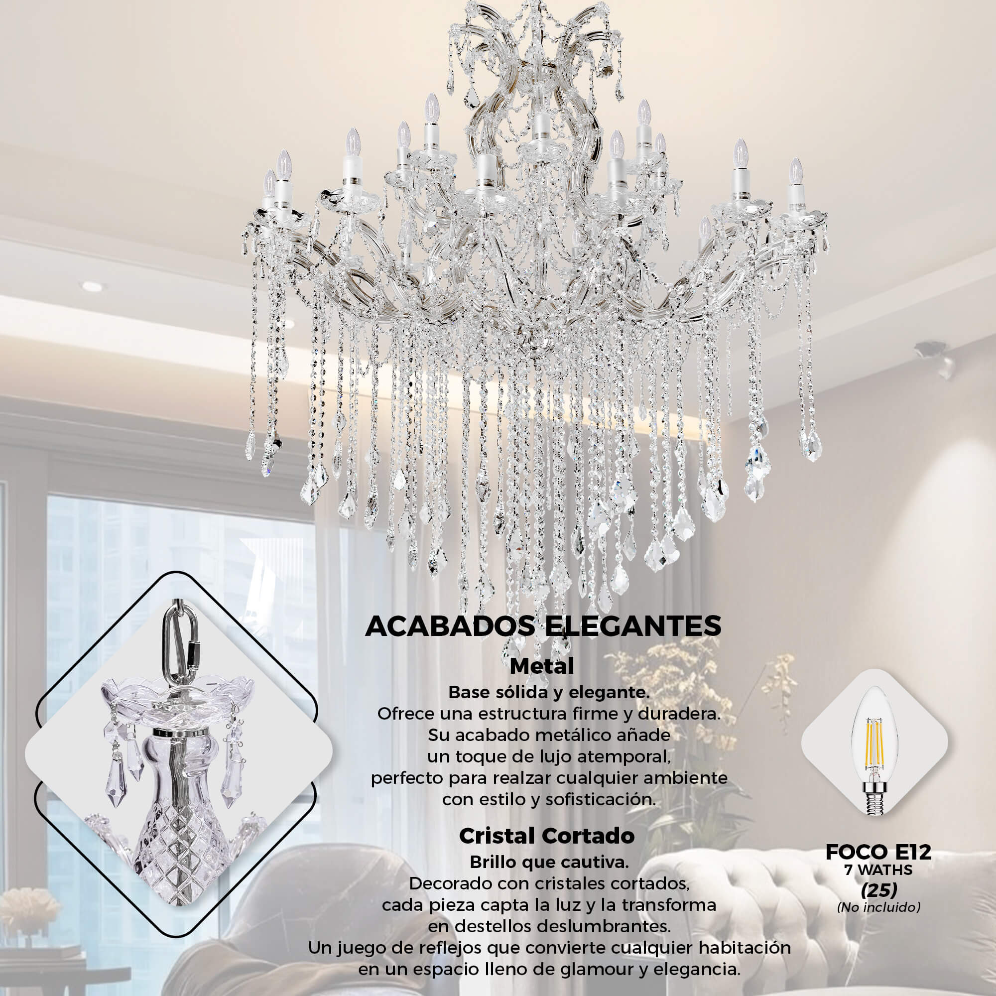 - Material: Metal y Cristal cortado